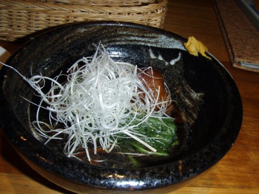 Anyways, back to the story. So Junichi ordered a really delicious meal of sashimi, chicken, kurobuta, salad, steak with ponzu sauce, and a few other great side dishes. We struggled through trying to communicate with both broken Japanese and broken English, but were able to have a pretty good conversation despite it all. He was smart and brought a phrase book and dictionary… something I SHOULD have done but did not. Junichi has obviously got the brains of the family.