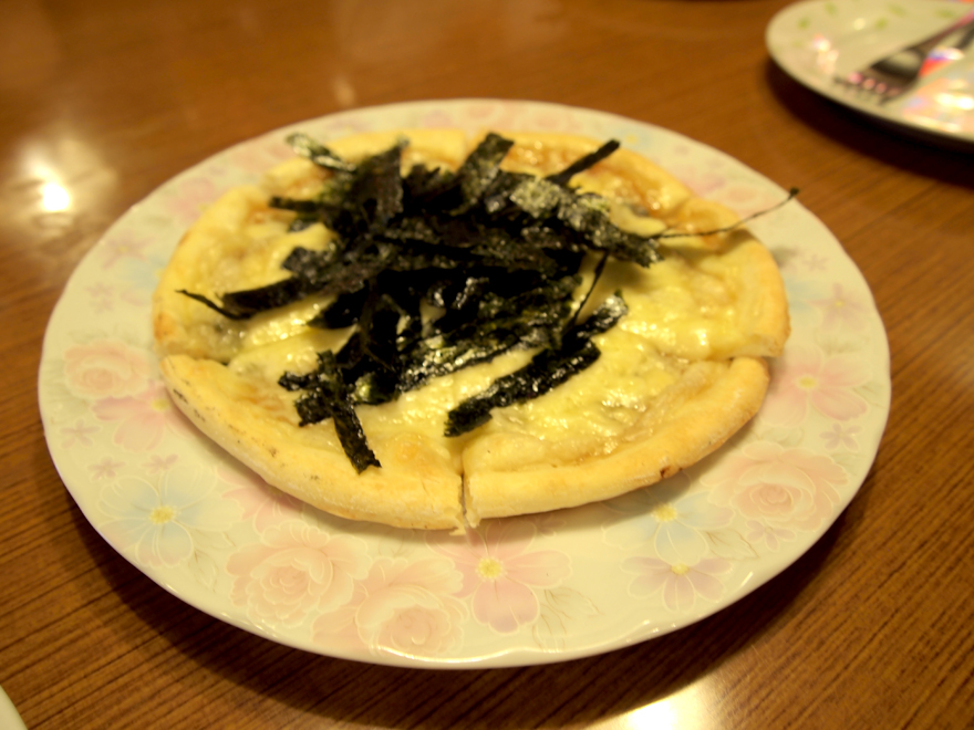 From there, we headed to dinner at a pizza place in town. They knew I liked pizza, so they took me to a local joint that served some Japanese style pizza. We had 4 different kinds: mixed meat, cod roe, curry, and mochi! YUP, I SAID MOCHI. I love Japanese pizza.
