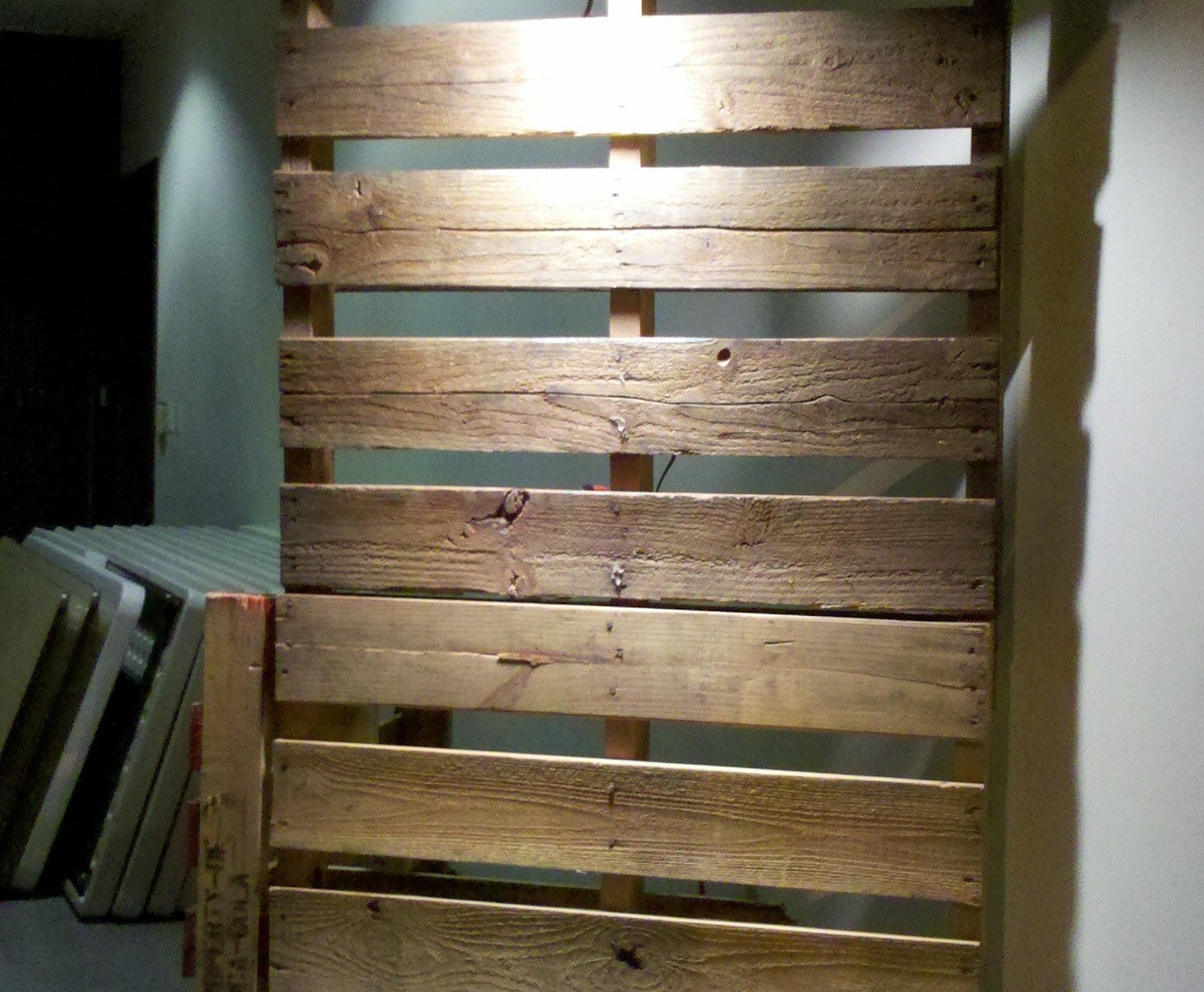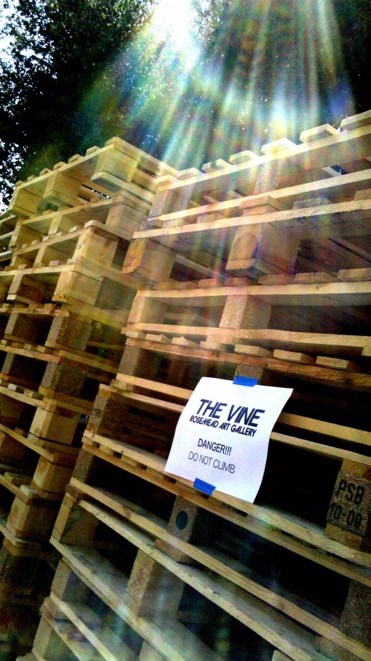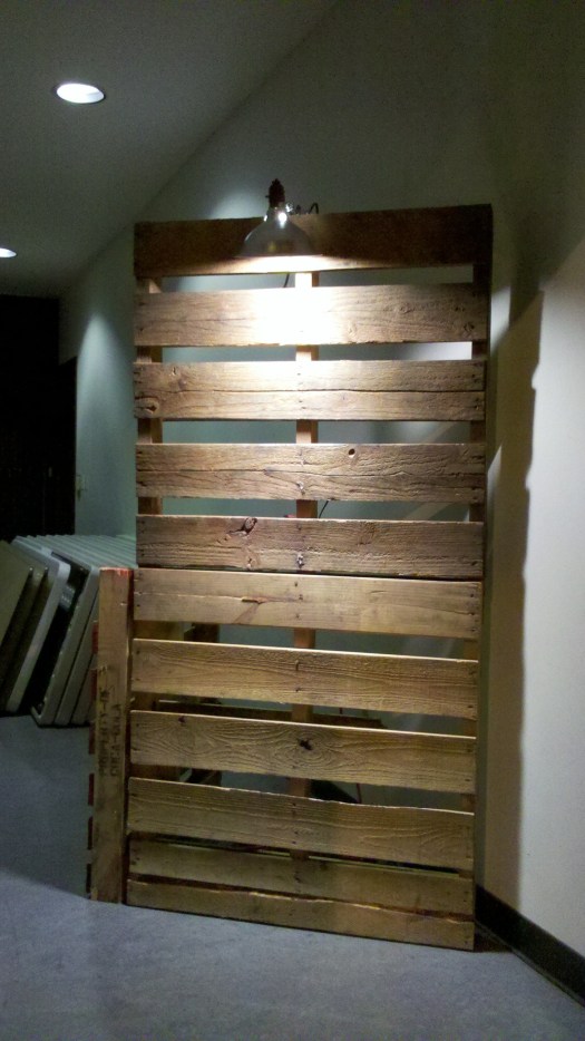 My idea was to create a gallery at minimal cost, but with maximum creativity. We don’t have a room with suitable wall space to put on a formal gallery for a lot of artists, so I had an idea to use wooden pallets to construct more wall space. It’s economical (they’re relatively cheap), and they have a raw, rustic feel to them so we wouldn’t have to worry about damaging the pallets. In fact, the more banged up they look, the more character they get!