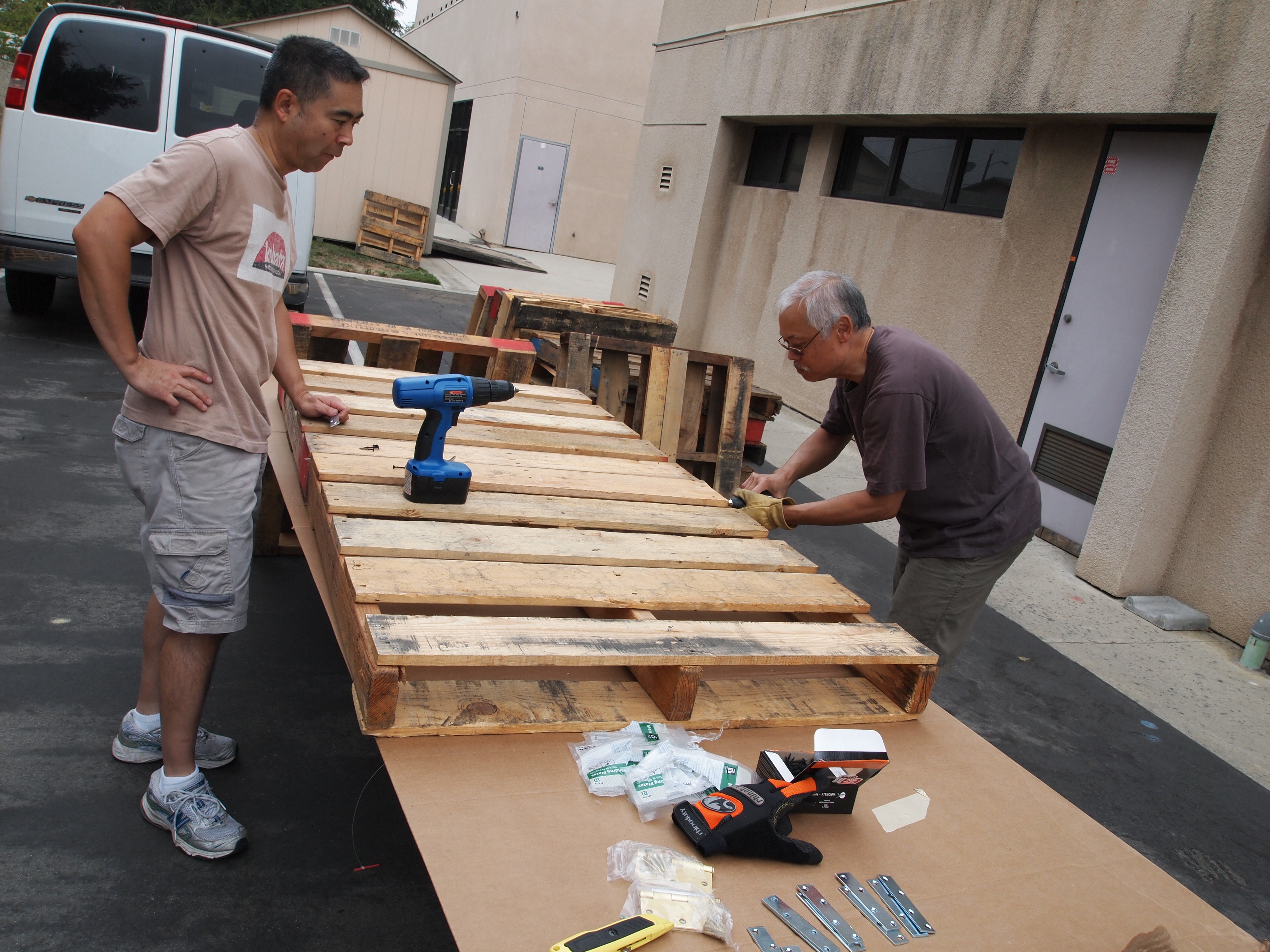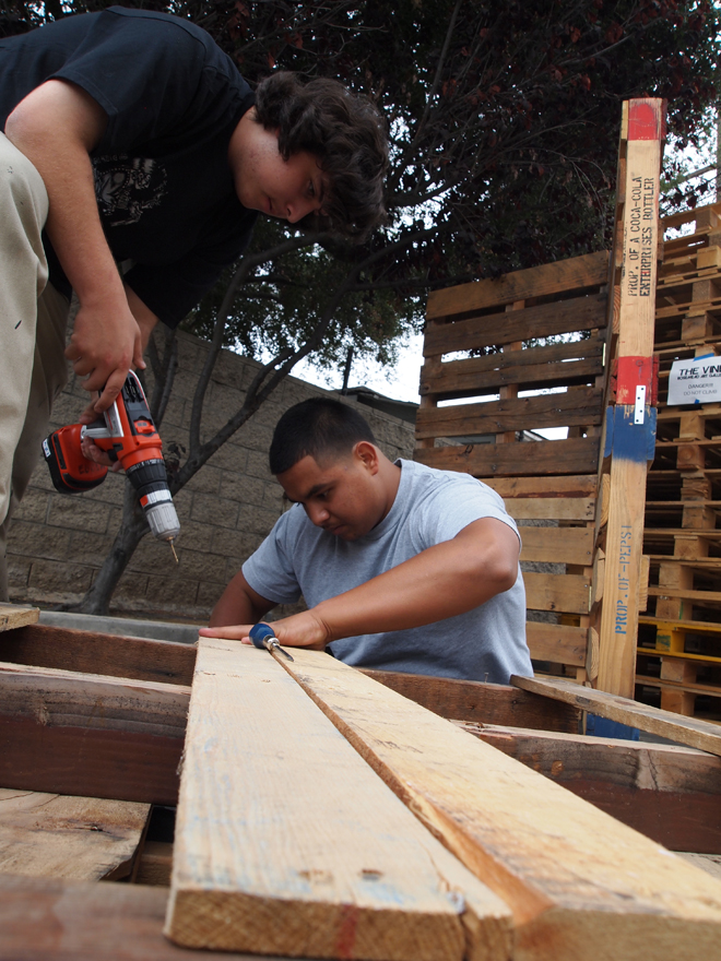 I asked Don Liv, a really cool artist at our church to partner with me (he had put on a few art shows in the past)… and with my limited background in museum production work, we set out to create the gallery! One of Don’s clients graciously donated 180 pallets to the church, and before we knew it… construction had begun!!