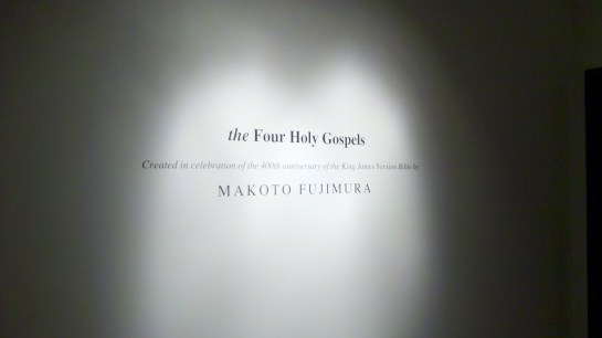 Last night I attended a reception at Azusa Pacific University for Makoto Fujimura, a phenomenal artist who studied the ancient art of Nihonga painting. He created a series of pieces to commemorate the 400th anniversary of the King James Bible. His pieces were amazing! He uses all natural pigments, gold and silver leaf, on either Belgian canvas or his preferred Kumohada paper. I went to the event with Jenny Goto, who created the 8 stellar pieces for Evergreen’s historical project (see my previous post). She was actually trained by Mako in Nihonga in the past, so it was really cool to see Mako’s show after Jenny’s.