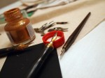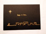 Made some Christmas cards with Fara tonight using my dip pen + nibs, and some gold ink I got a few months ago. I love the gold ink… it’s got a powerful quality to it. It’s no wonder that throughout human history the color gold has been used to symbolize the divine! I’m trying to think of a way to make some modern-day icons using gold and wood. But for now, check out the xmas card gallery!