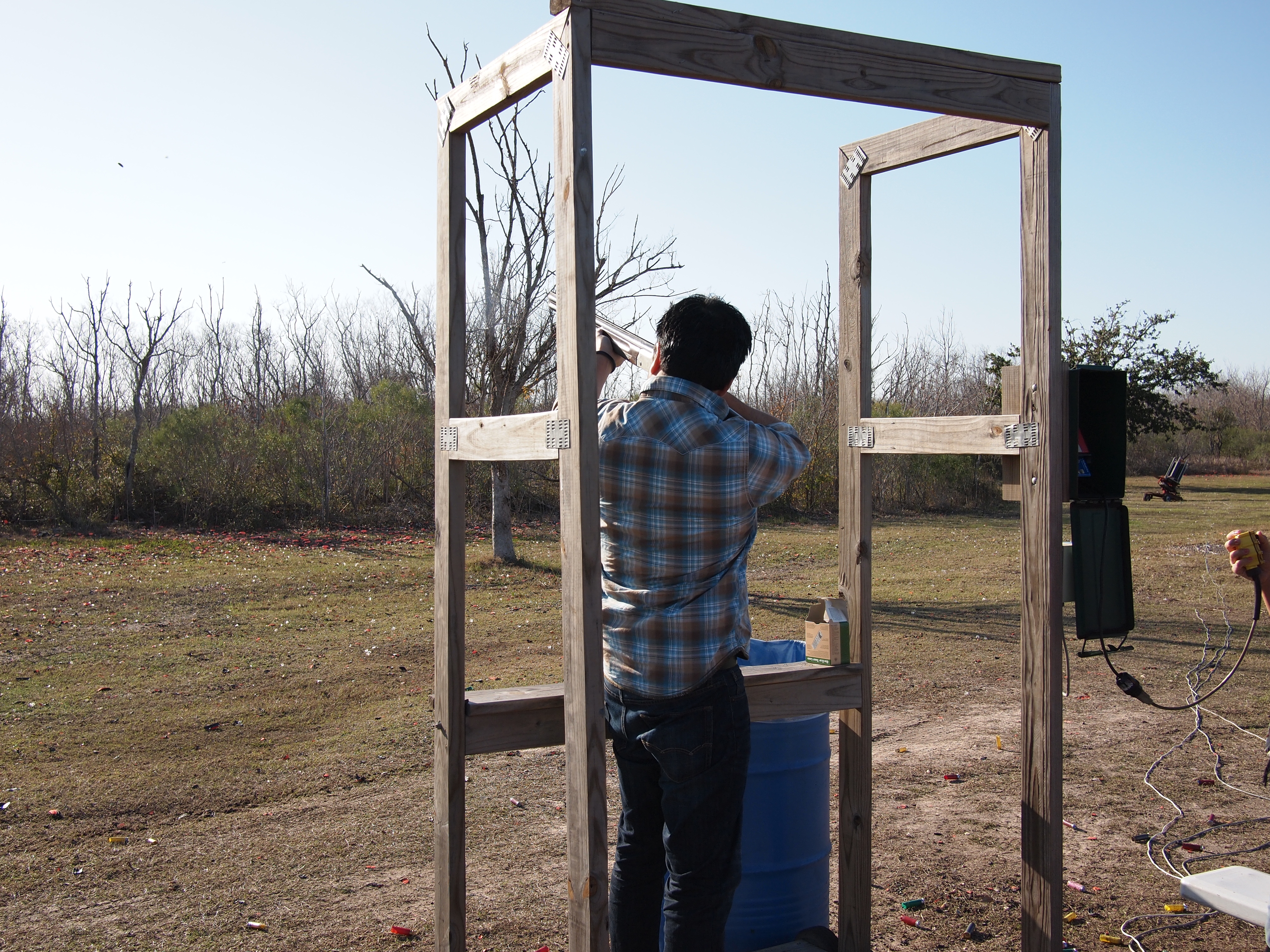 Shooting clay pigeons. My first time with a shotgun in hand. Notice the plaid western shirt to try and blend in... no joke, we were all overdressed. John Deere hats and tshirts were the avg. uniform here. Fara's bro-in-law, Allen, was awesome at this. I semi-sucked... only blew-up a handful. I might be better at shooting zombies.