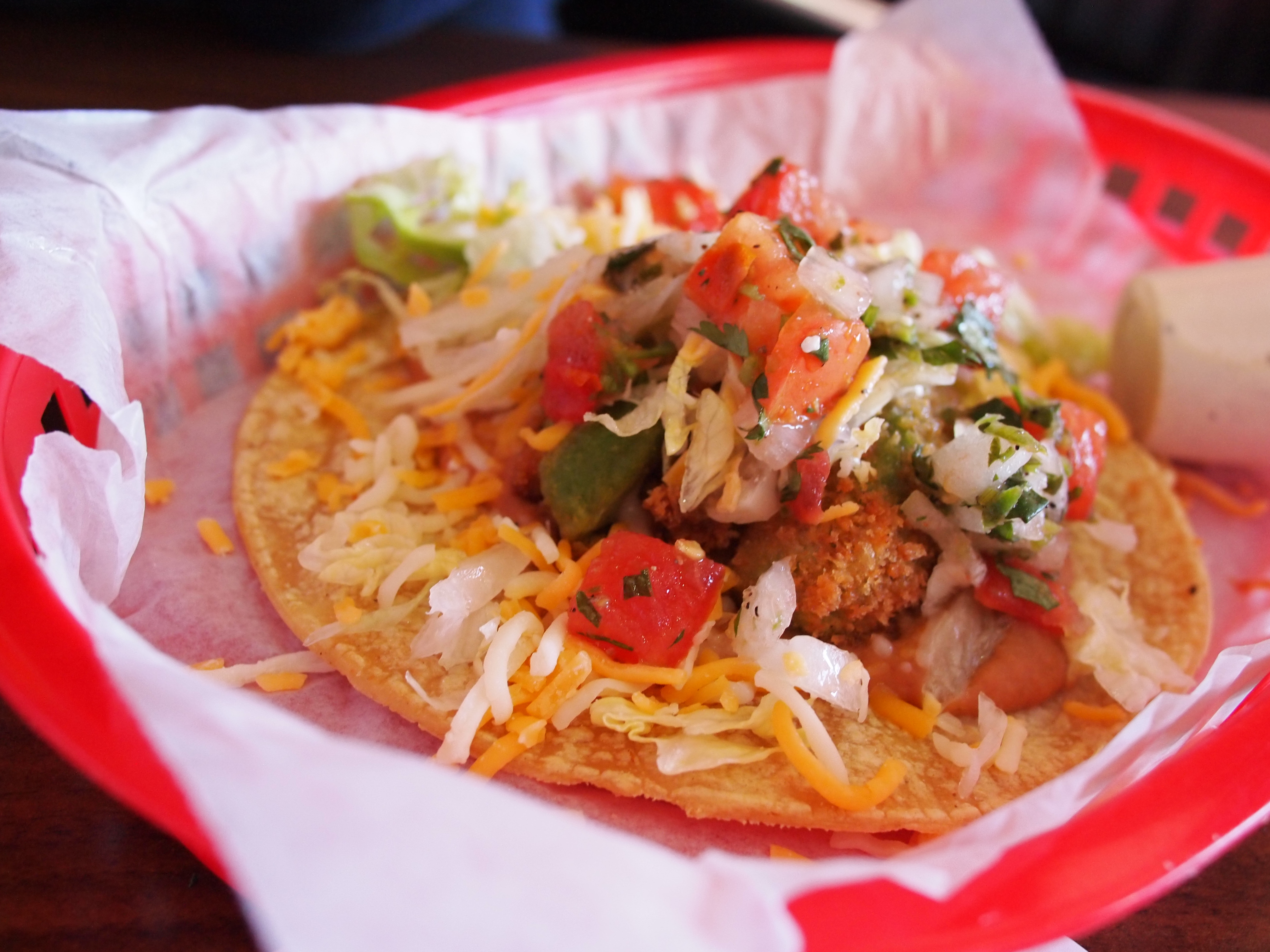 Torchy's Tacos in Austin. I ordered one with fried chile and egg called the Dirty Sanchez. Seriously. (If you don't get why this is gross and/or funny, do NOT look it up on the internet)