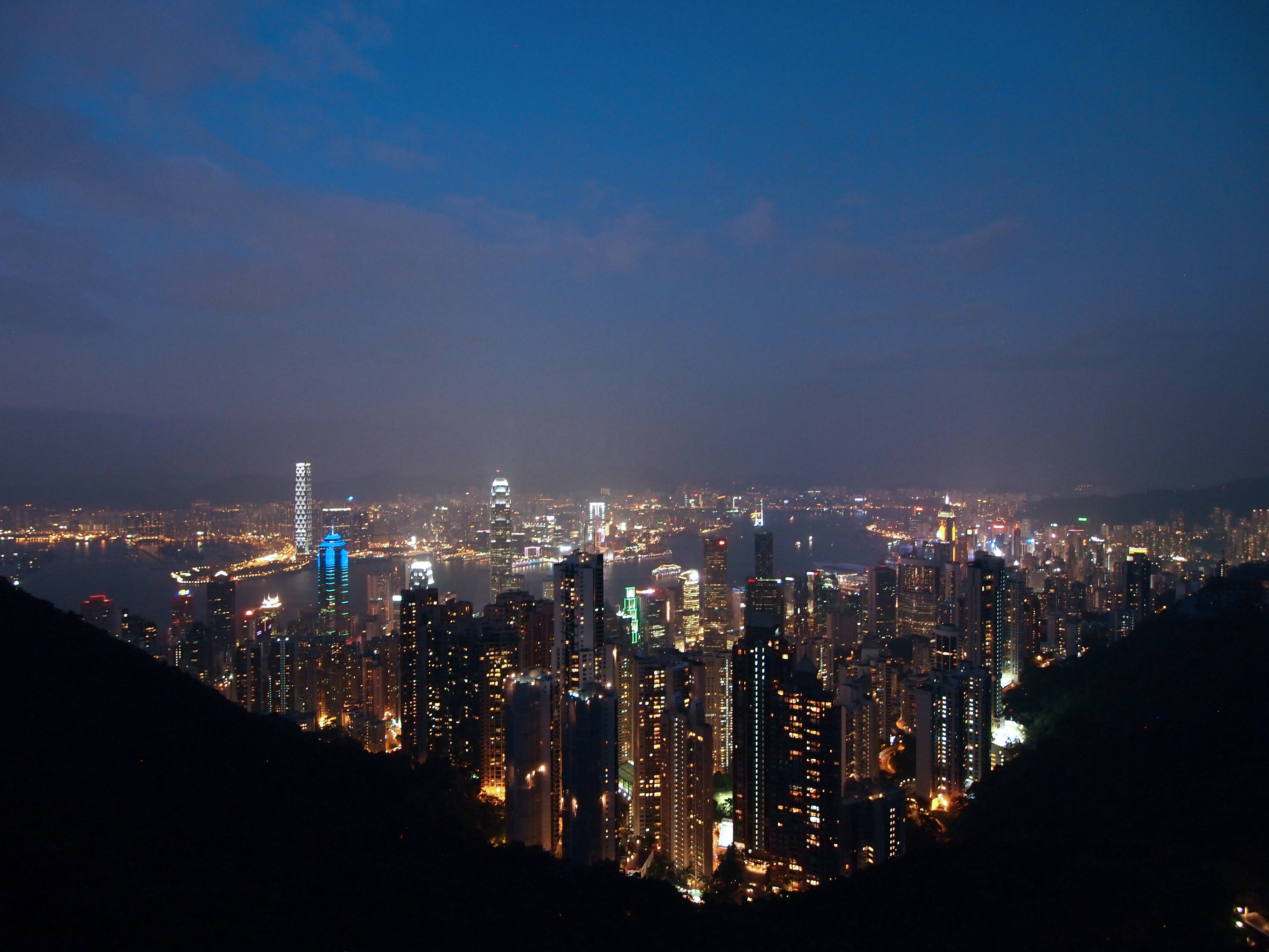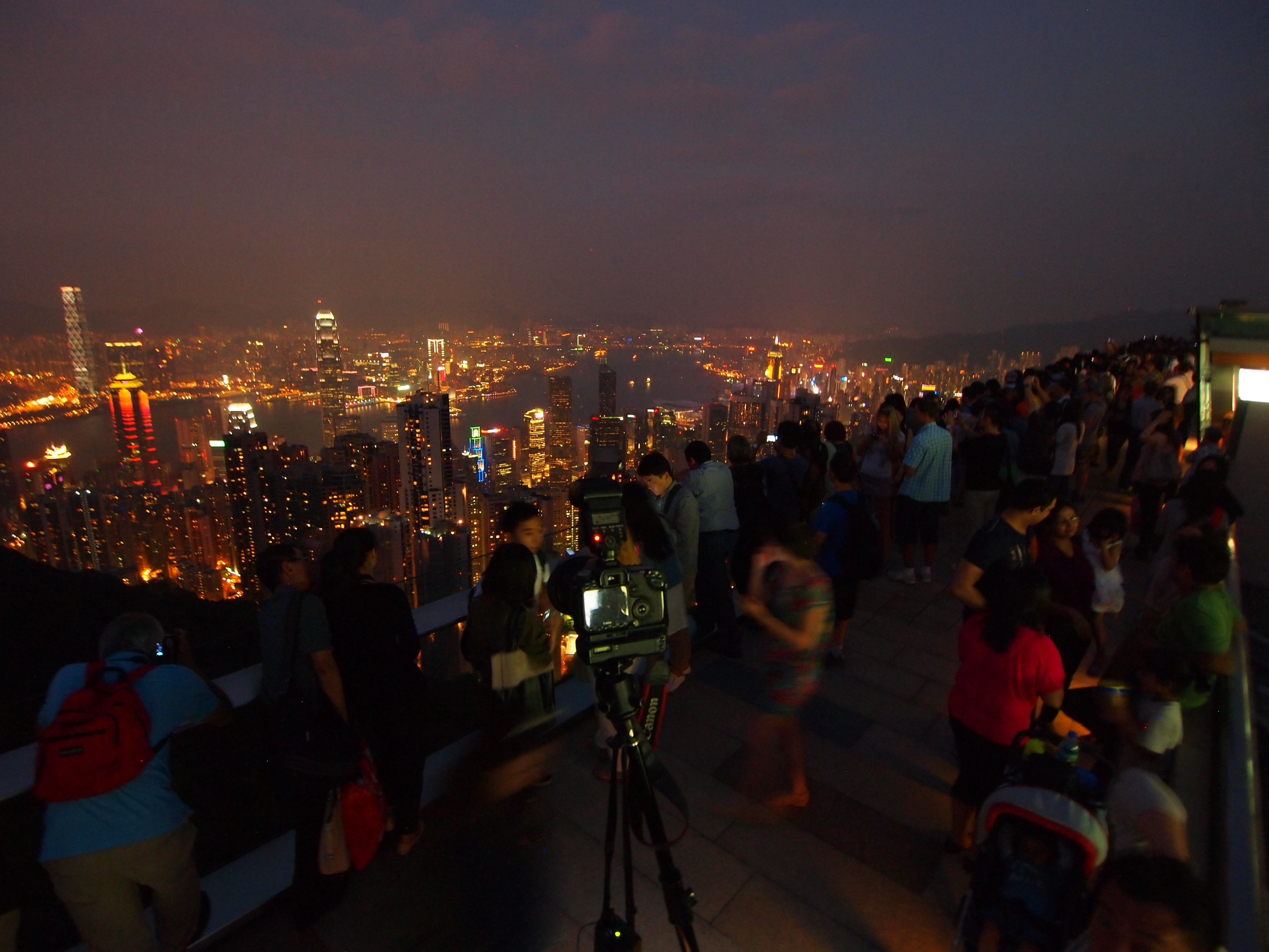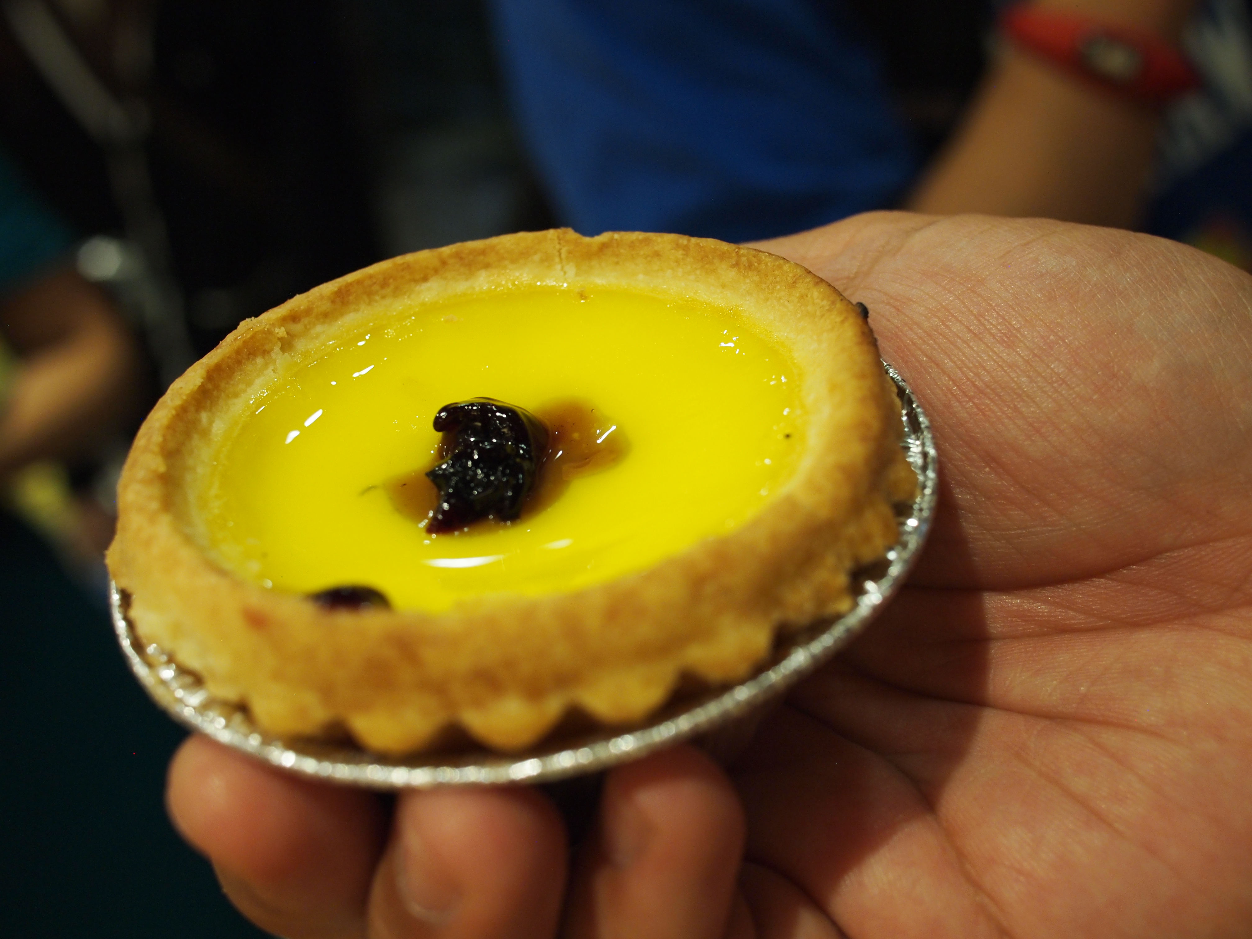 The roof was packed! We had to wait patiently to get a spot along the railing. Everyone wanted a picture.The view. The HK skyline is one of the most amazing things these eyes have ever seen. Considering a view like this would cost about $15 in the US, the price for this was a steal! Totally worth it.This high density-city is beautiful at night. Two regions of skyscrapers lining a body of water, busy with boats ferrying people and products from one side to the other. And from up here, the noise of the city is reduced to a peaceful level.We also found another dan tat place that was well-known for their tarts. I got one with blueberry inside. Dee-lish? You betcha. If you ever have the choice of getting the blueberry, do it.