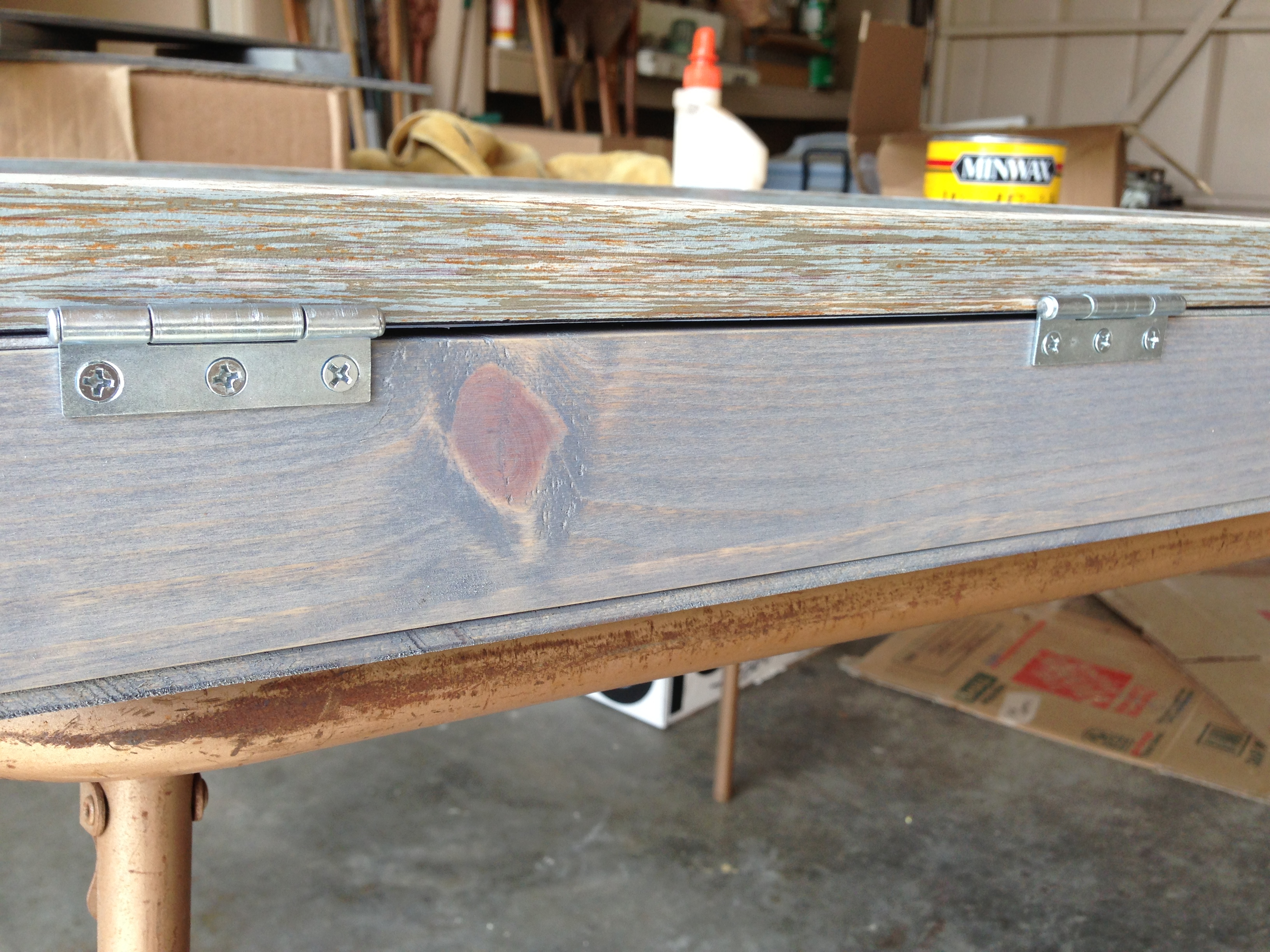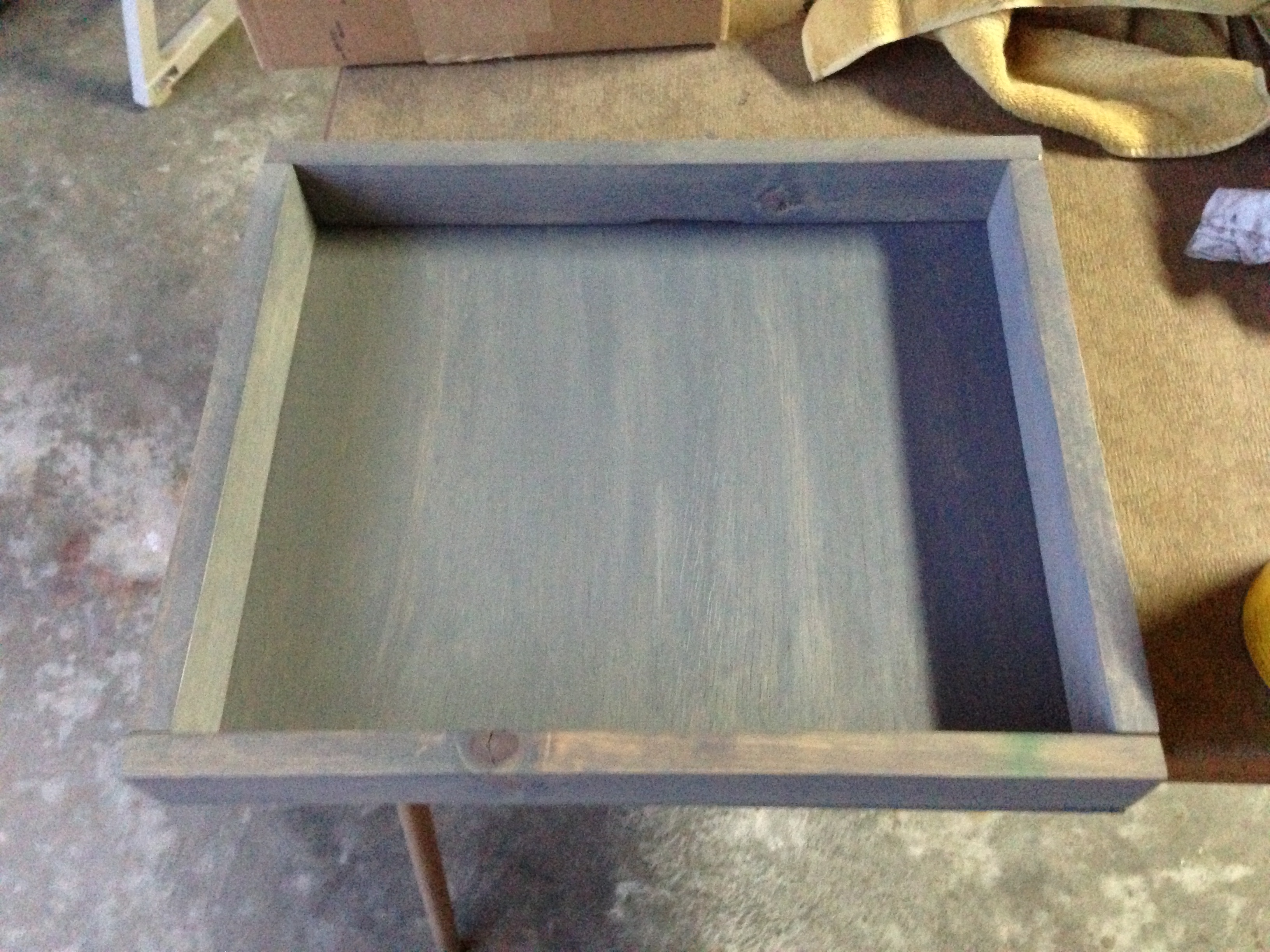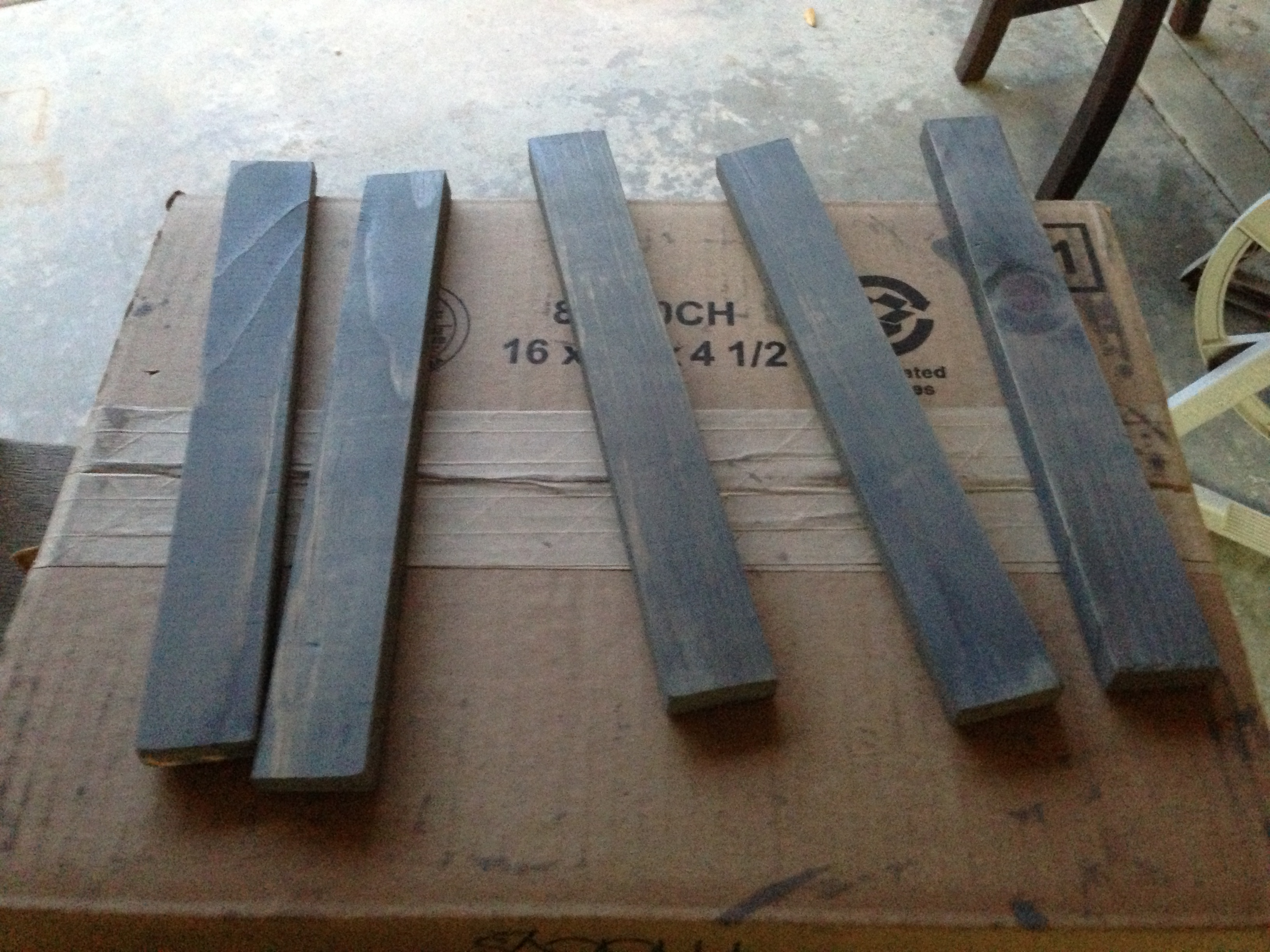 I bought the wood and parts at the local Home Depot (my fave), and luckily had some gray stain from my shelf project that matched wonderfully! I also had my wife head to Anthropologie (her fave) for some overpriced-yet-cool cabinet knobs, which would later become the necklace holders.
