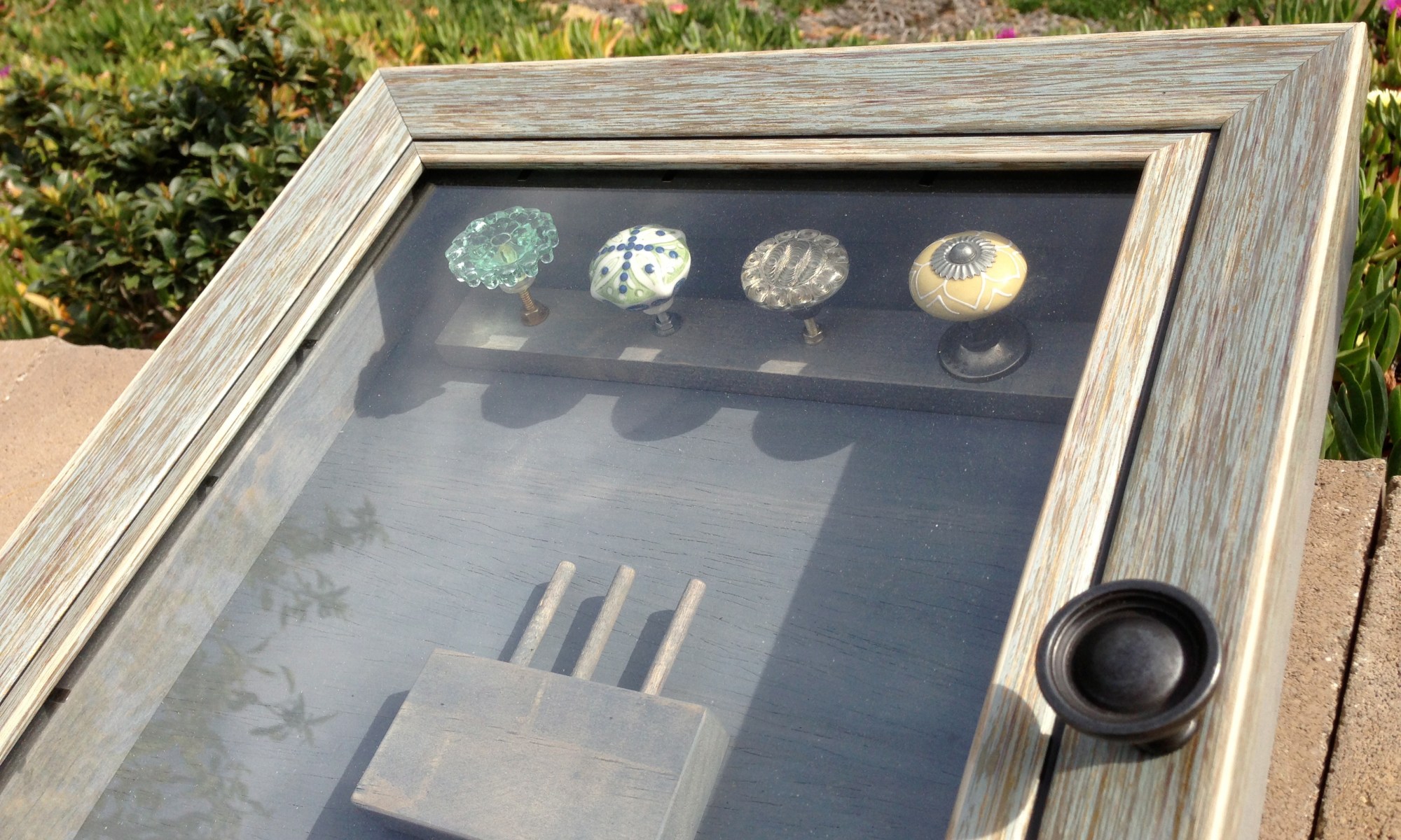 With the basic jewelry box is done, I could get started on the decorative details. This is the fun part – bringing it all together. All these details really help to make this feel like a creative piece rather than a utility one. I chose to let the wifey pick out some cabinet knobs so that she could add more of her sense of style to this. She stopped by Anthro and chose some great colorful pieces.